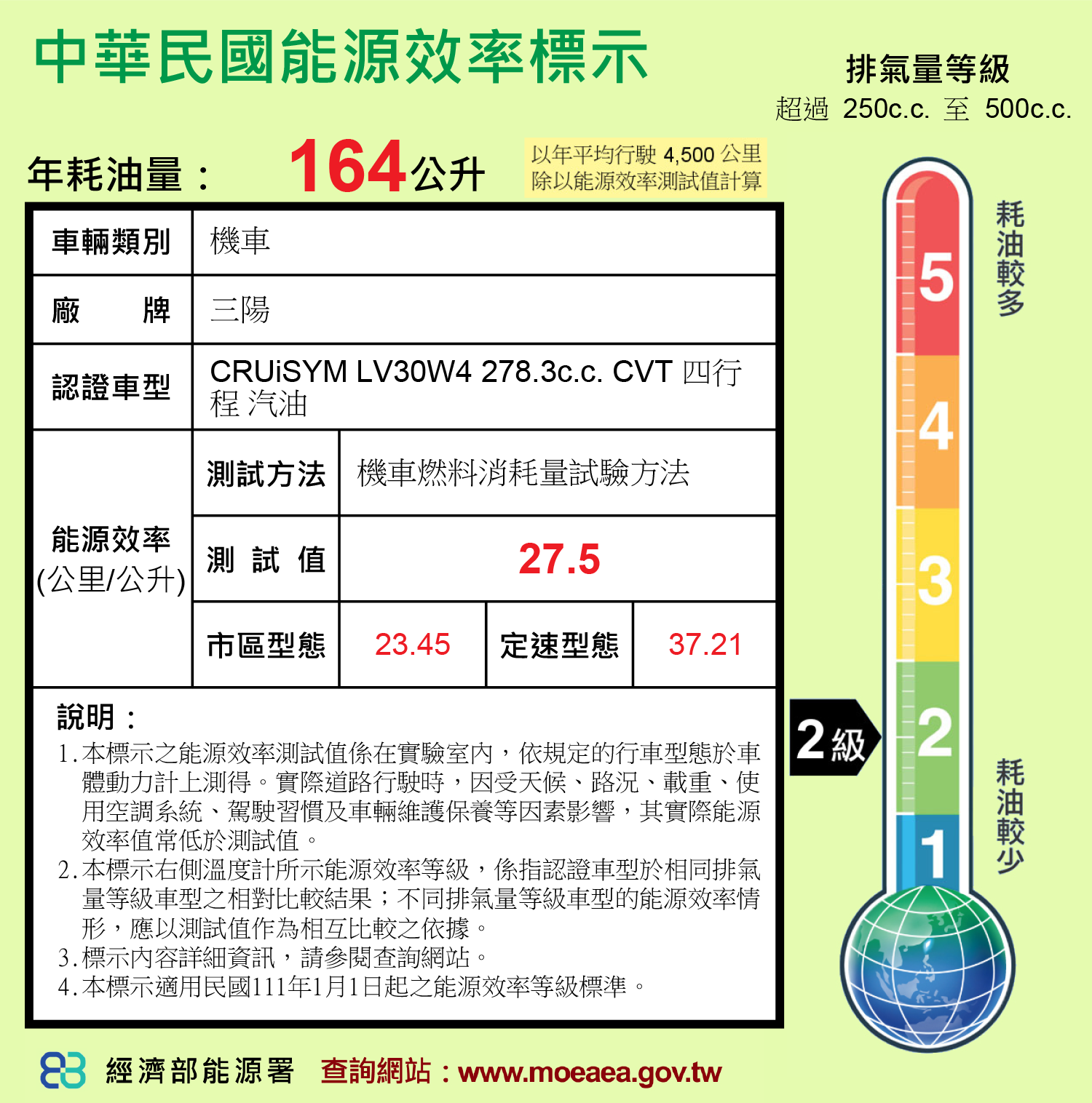 最佳油耗: 27.5km/l